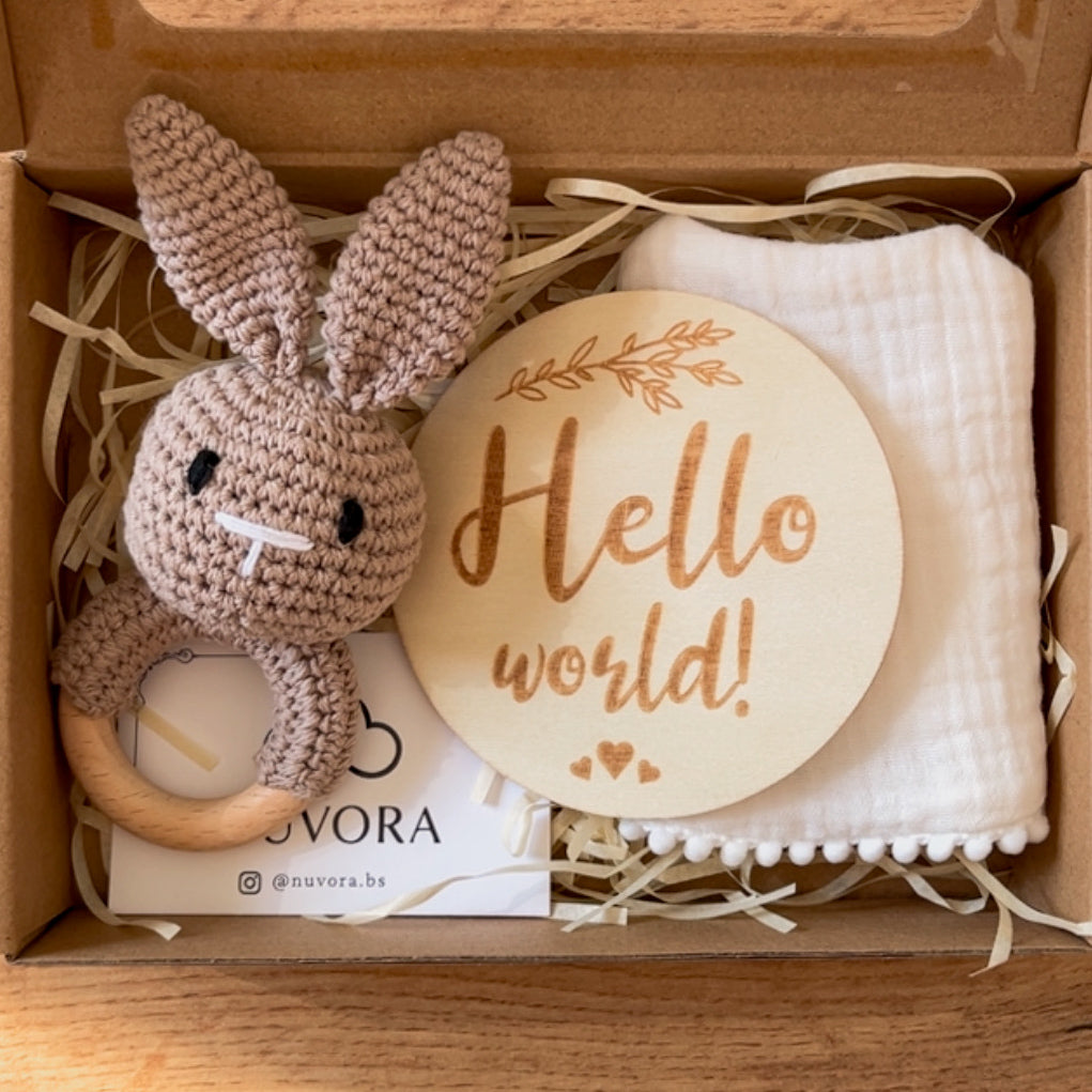 La cajita está compuesta por tres piezas seleccionadas para acompañar los primeros meses del bebé: